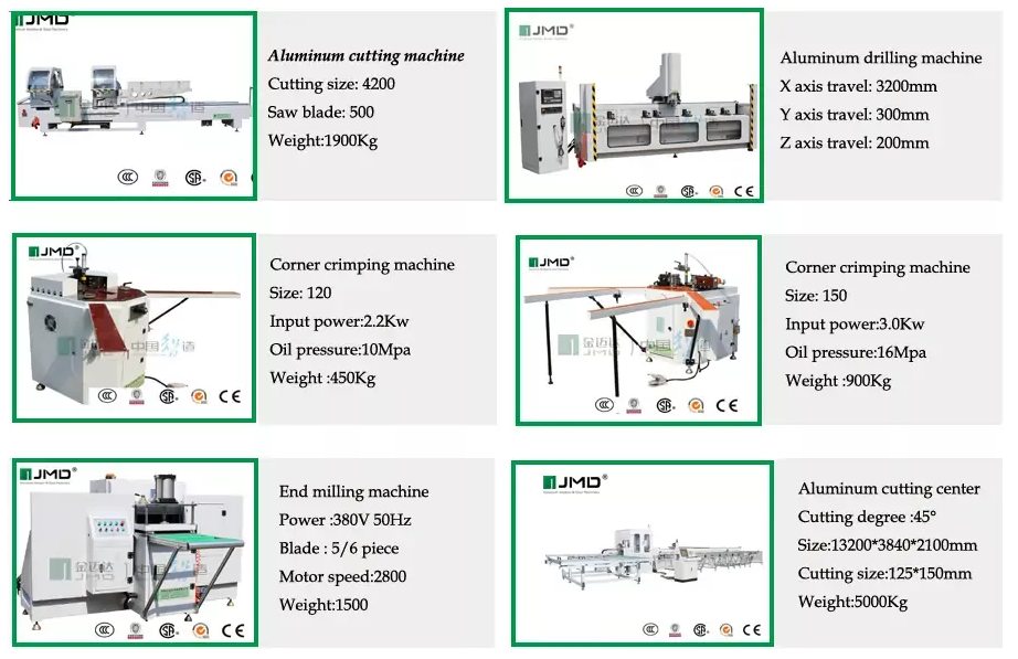 Our main business is aluminum window door equipment, aluminum processing equipment,aluminum clad wood window equipment. We accept all kinds of door and window equipment customization, aluminum clad wood door and window customization, equipment precision is high, we are used for strong R & D and design capabilities, and have won more than ten national invention patents and technical patents. The specific equipment includes: double head cutting saw for aluminum doors and windows, automatic cutting production line for aluminum profiles, aluminum window crimping machine, three-axis aluminum processing center, end milling machine, aluminum profiling milling machine, aluminum punching machine, widely used in aluminum doors and windows manufacturing, aluminum alloy parts for automobiles, solar aluminum frame, etc.