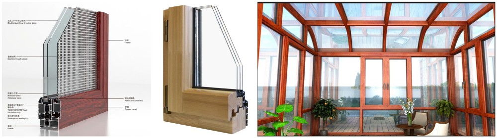 The above are the exhibition pictures of our thermal broken aluminum doors and windows, aluminum clad wood doors and windows, and sunshine room.